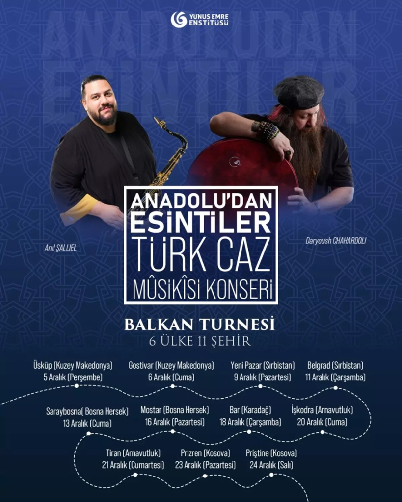 Yunus Emre Enstitüsü, 2-25 Aralık 2024 tarihleri arasında Balkanlar’da aralarında Makedonya, Sırbistan, Bosna Hersek, Karadağ, Arnavutluk ve Kosova’nın yer aldığı toplam 6 ülkede 11 konser düzenleyecek.