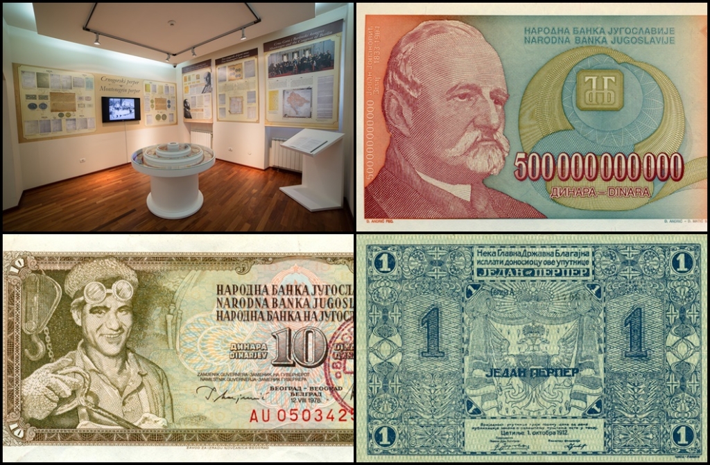 Müze, sosyalist Yugoslavya’nın çöküşü sırasında yaşanan hiperenflasyon dönemine ait yüksek nominal değerli banknotları da içermektedir. Sergi, 2000 yılında Karadağ’da dinarın yerini alan Alman markı ve 2002’den itibaren kullanılan euro koleksiyonlarıyla sona ermektedir.