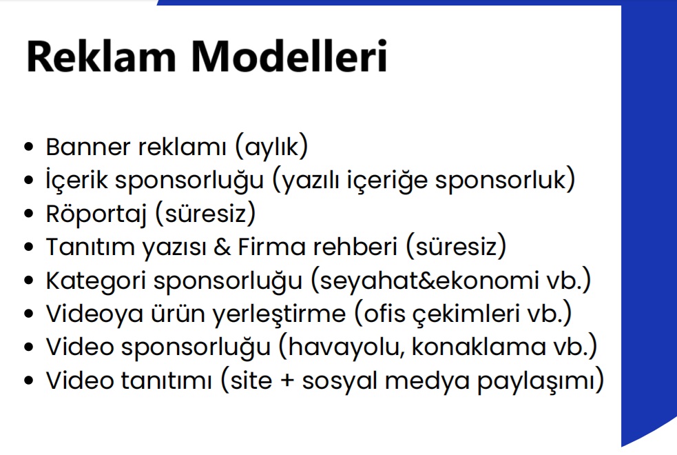 - Video Sponsorluğu: Havayolu, konaklama gibi sektörlere uygun sponsorluklarla izlenme oranlarınızı artırabilirsiniz.